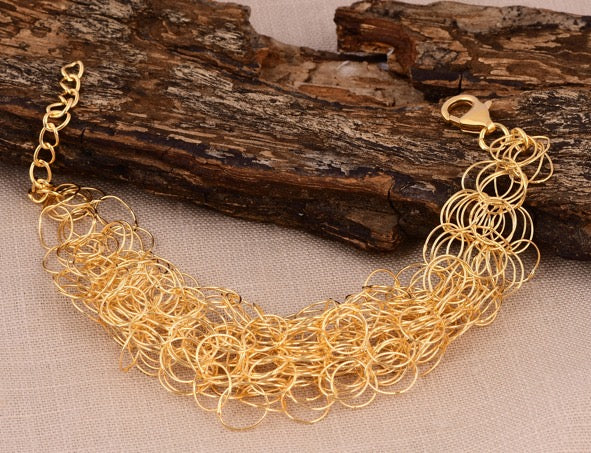 Pulsera oro de 18k de Oro Vermeil ligera, hecha para simular la ligereza de una esponja de mar natural.